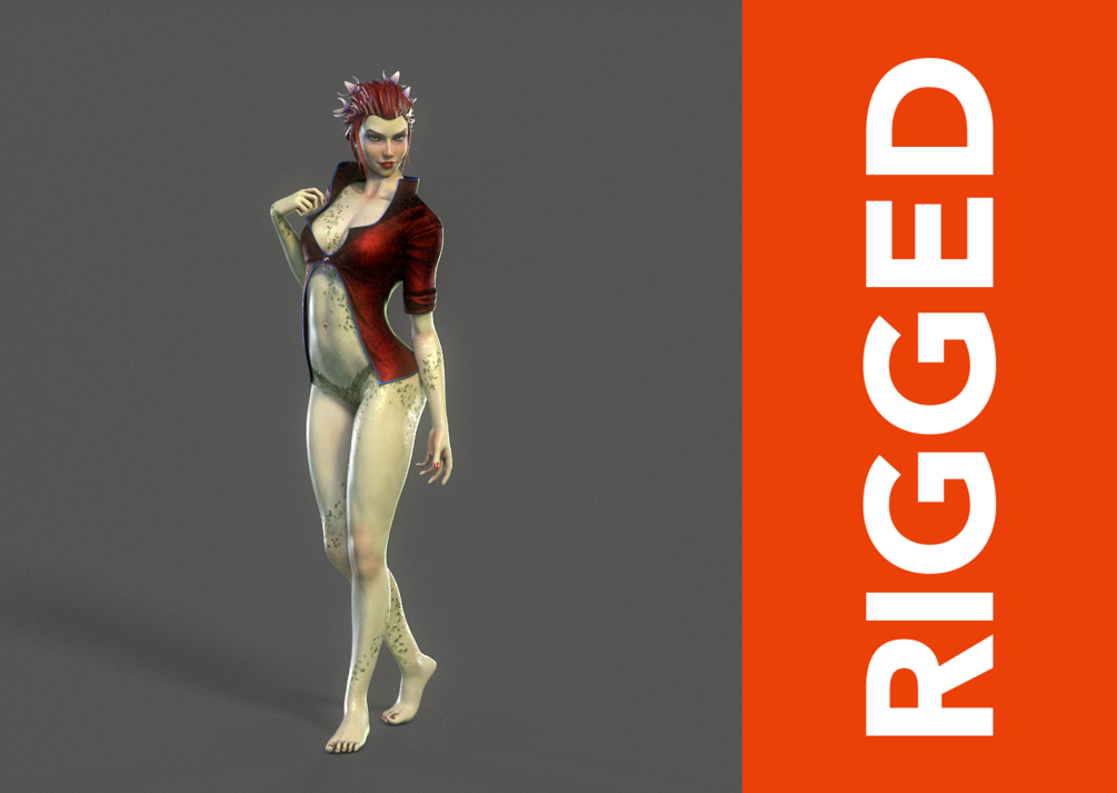 This is a game-engine friendly, Poison Ivy rig created in Maya with polygonal geometry, 2K textures, Arnold materials.